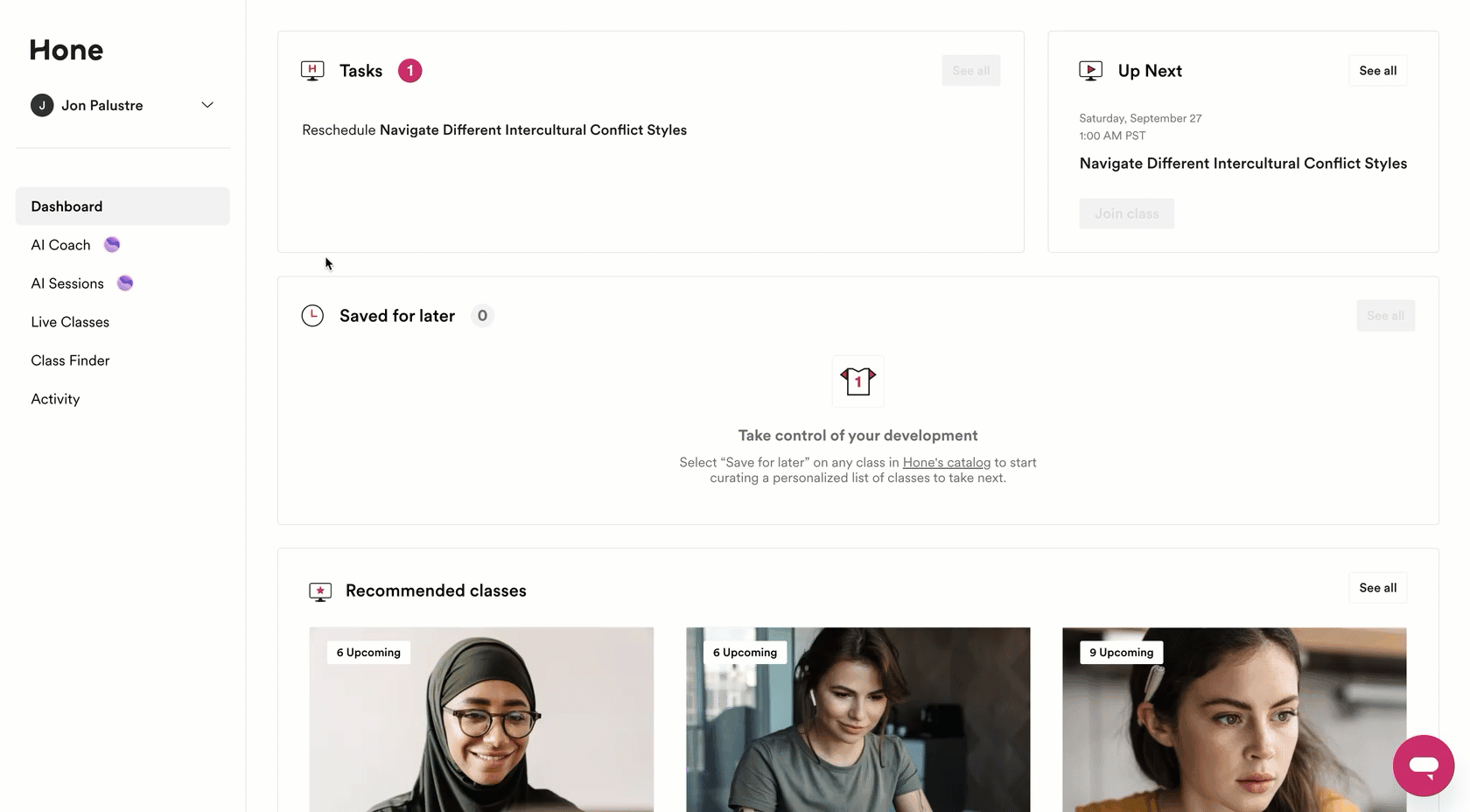 - You can access the class content for Hone Membership or Private classes that you enrolled in, completed, or missed.