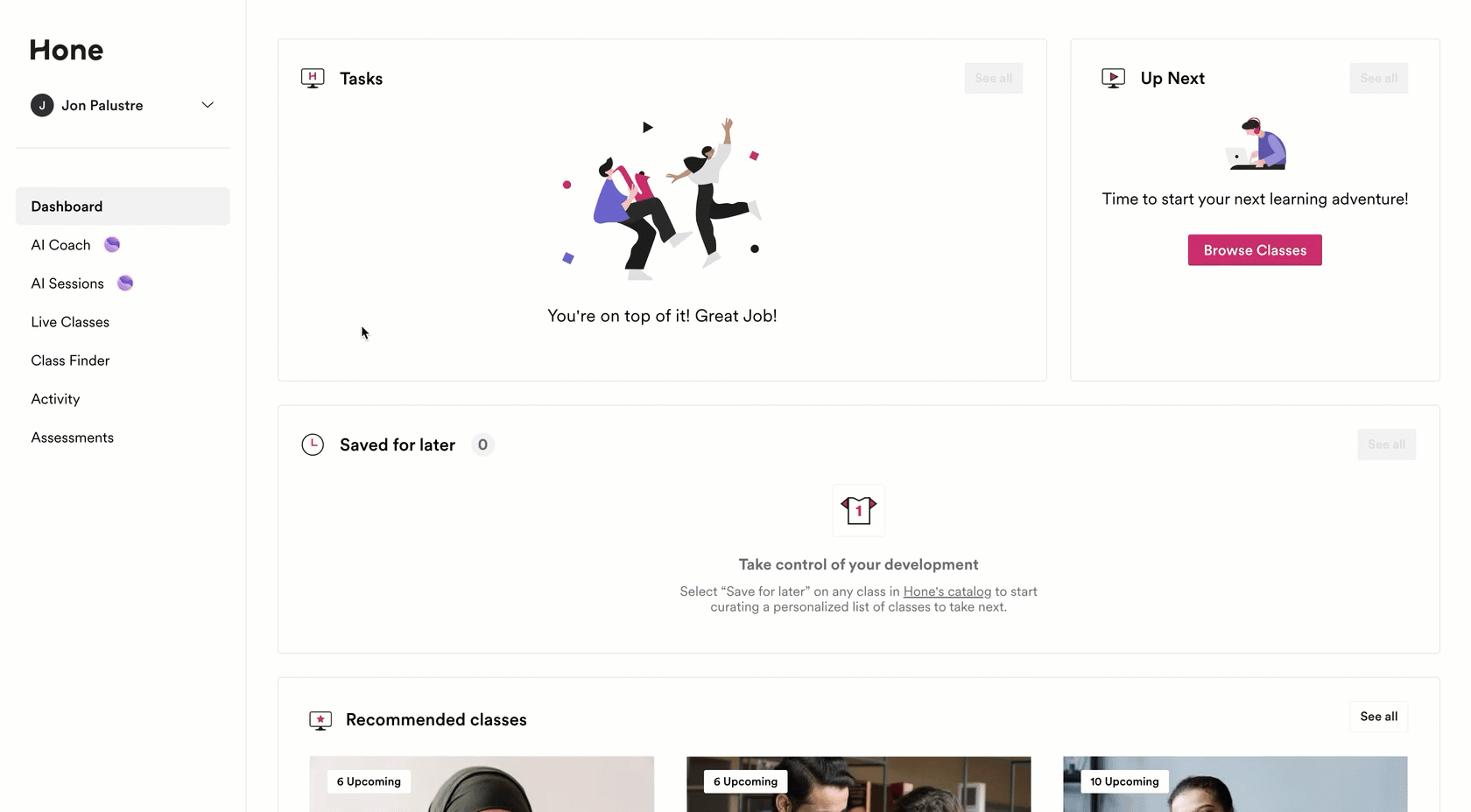 - The class will then appear under ‘Saved for later’ on your Learner Dashboard.